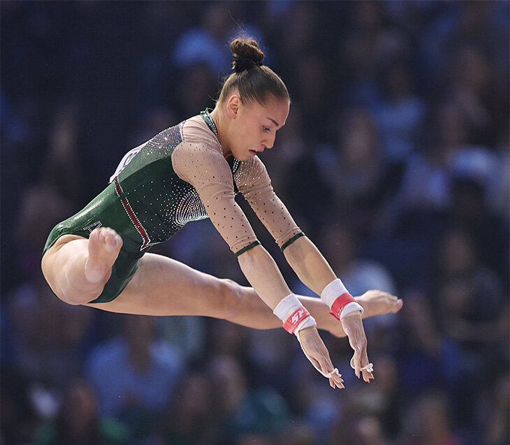 После успеха на Олимпийских играх в Токио (золото в командных соревнованиях у мужчин и женщин, суммарно 8 наград) россияне оказались заперты на внутренних соревнованиях. Сначала выступать не давали внешние санкции, потом – самозапреты на нейтральный статус. И только в начале сентября на турнире в Париже Ангелина Мельникова прорвалась на помост и на пьедестал.