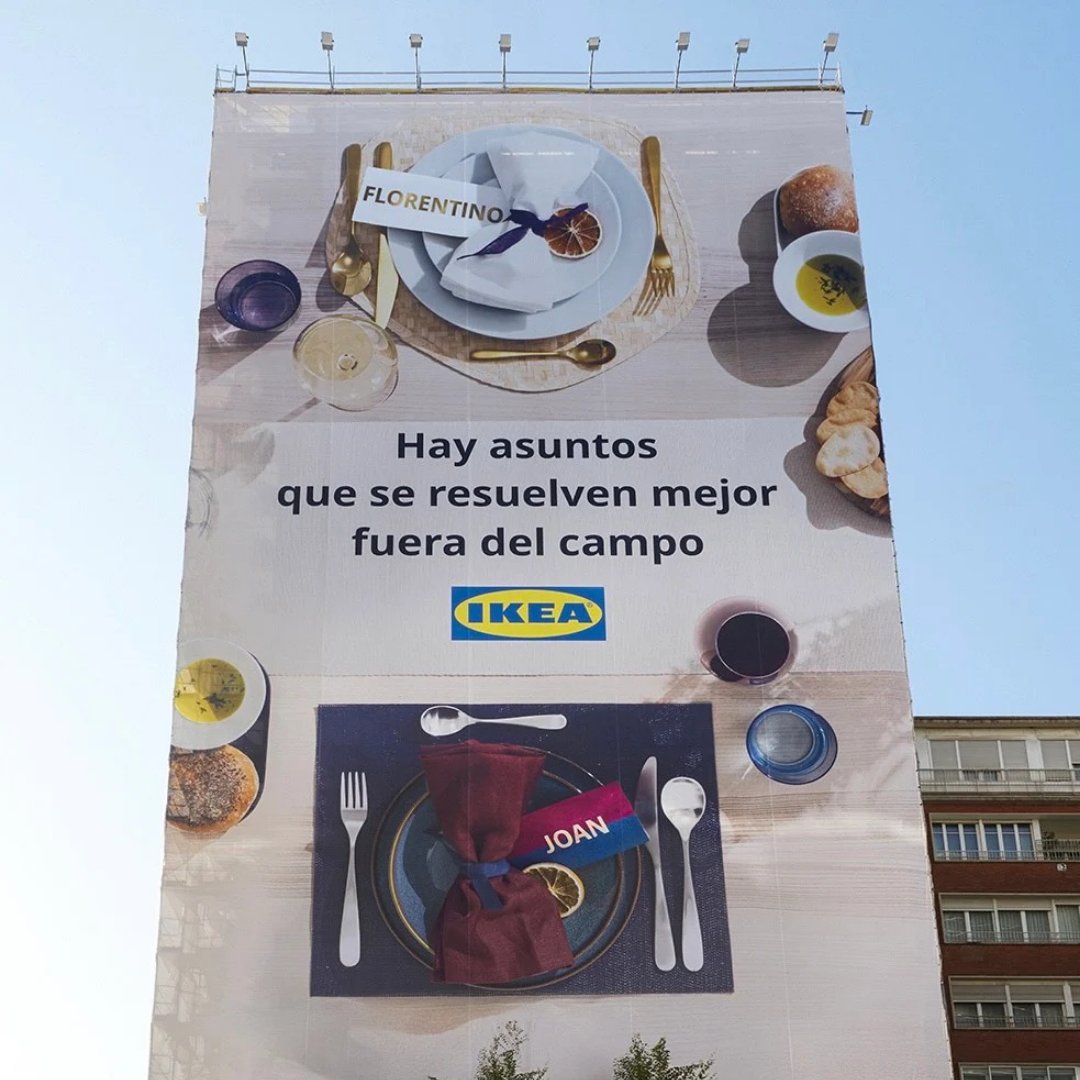 Перед матчем испанский филиал IKEA решил примирить заклятых врагов: баннер у стадиона «Сантьяго Бернабеу» призывает президентов Флорентино Переса и Жоана Лапорту возобновить традицию ужинов перед Класико. Ведь все разногласия можно решить за общим столом (от IKEA).