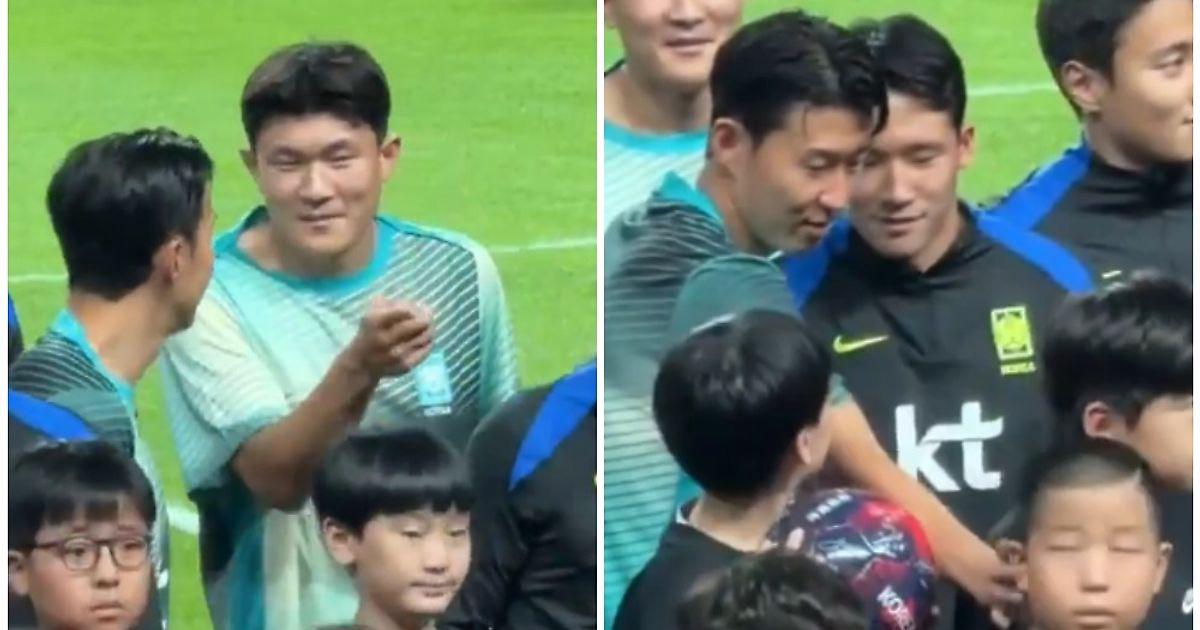 Перед игрой в объектив камеры попал милый эпизод. Когда игроки южнокорейской команды стояли вместе маскотами, защитник «Баварии» Ким Мин Чжэ увидел, что у одного из детей на голове выбрито «Сонни» – прозвище Сон Хын Мина. Он показал это форварду и тот окликнул парня и показал ему большой палец.