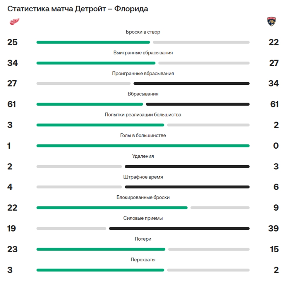 Перед этой принципиальнейшей встречей (все-таки в гости пожаловал действующий чемпион) из стана «Детройта» пришло две новости с различным окрасом. Хорошая новость заключалась в том, что Рэймонд катался на утренней тренировке без каких-либо ограничений. Плохая же была анонсирована чуть позже: шведская звезда все-таки пропускала матч с «Флоридой».