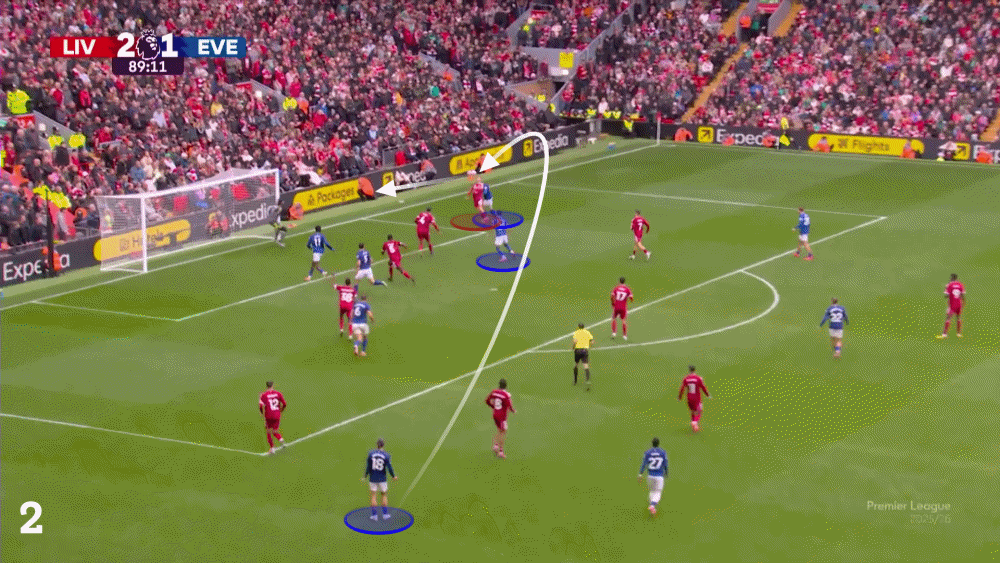 Именно эта последовательность привела к голу «Эвертона», когда подопечные Дэвида Мойеса завалили правый фланг, чтобы превзойти численностью Керкеза. Когда мяч пролетел над его головой, простая скидка Илимана Ндиайе позволила Идриссе Гуйе отличиться в касание.
