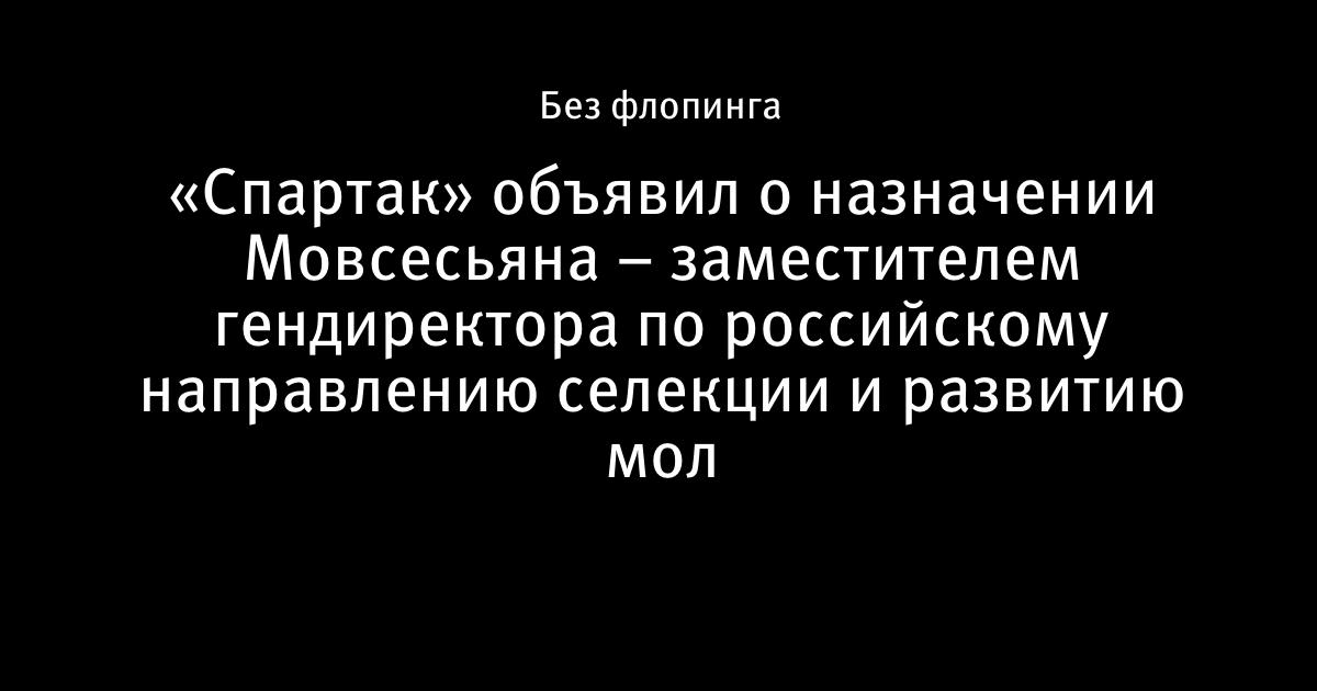 «Спартак» объявил о назначении Мовсесьяна – заместителем гендиректора по российскому направлению селекции и развитию мол