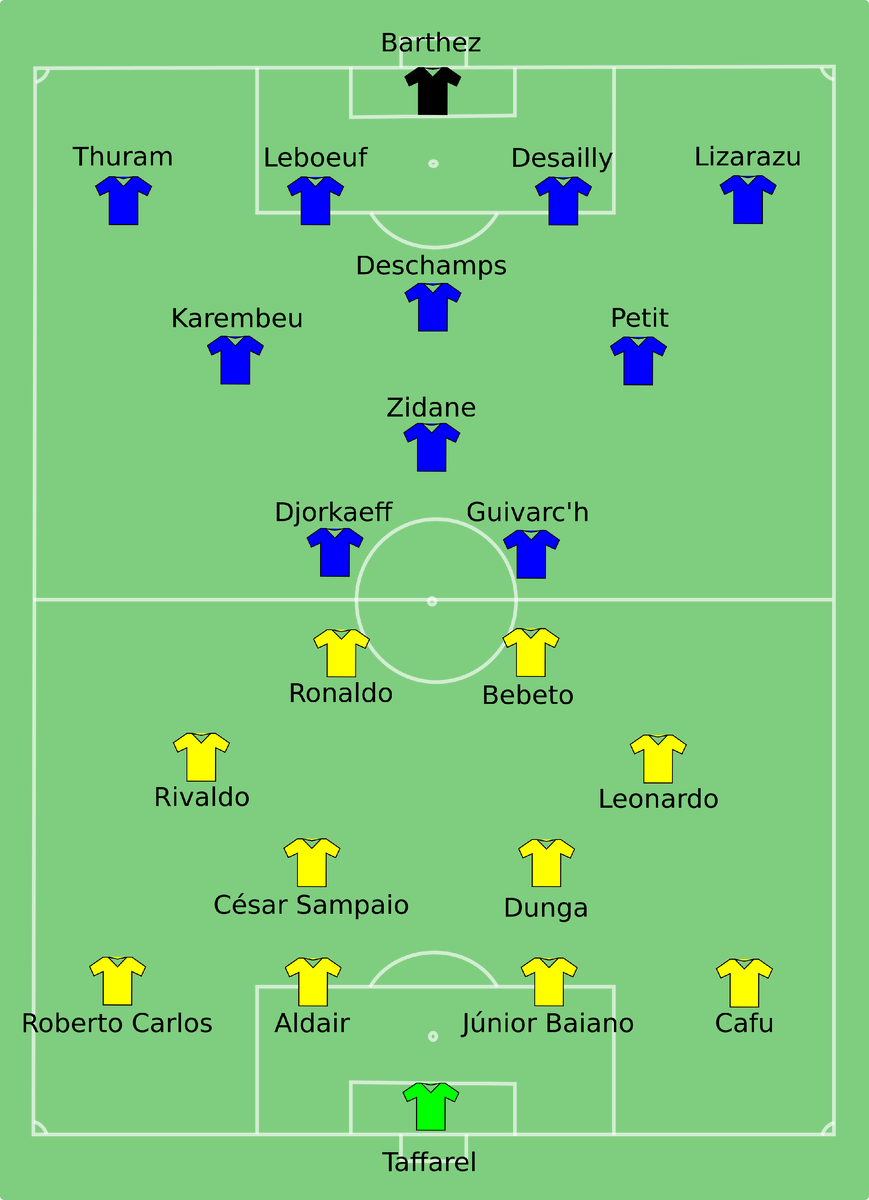 В итоге, если мне не изменяет память, то именно Ривалдо в финале выдал решающий важный пас на Роналдо. И именно справа, а не слева, как играл обычно и в 98 году… Когда Феномен сделал счёт 2-0). Именно из инвертированной позиции! Кстати, и в Барселоне Ван Гал нередко использовал Ривалдо по всему фронту атаки, втч справа.. А тот же Овермарс левоногий и реактивный носился более привязано по всему левому краю атаки и полузащиты! Для Ривалдо эта тотальная модель, «голландский стиль», не была новой… Но в сборной она взялась далеко не сразу! Её придумал только Сколари в победном 2002 году!