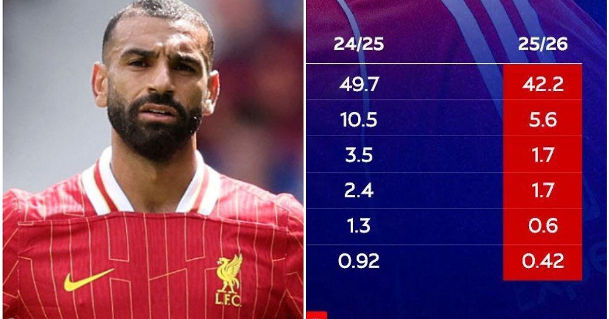 Британский Sky Sports покопался в статистике за прошлый год и за этот, и наглядно через инфографику показал, что египтянин просел буквально во всех атакующих показателях.