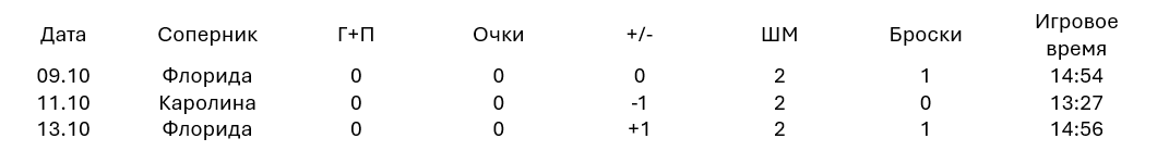 - 3 игры, 0 очков, среднее время на льду - 14:26, что на более чем 2 минуты меньше, чем в среднем в прошлом сезоне (16:41). Из нападающих за эти 3 матча только Гарнет Хэтэуэй провел в среднем меньше Мичкова