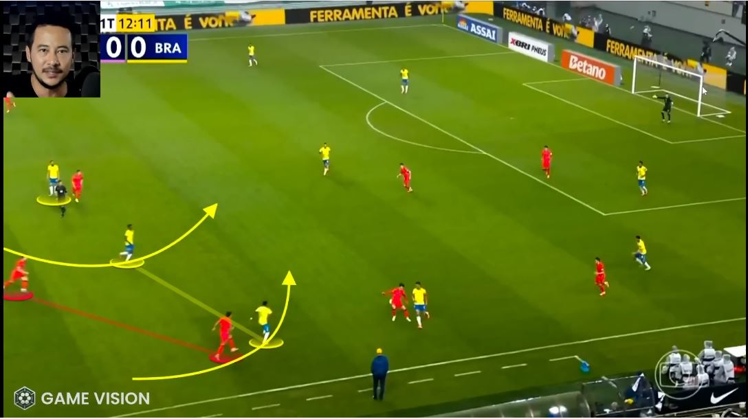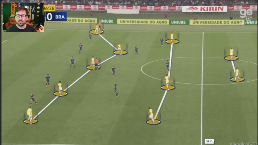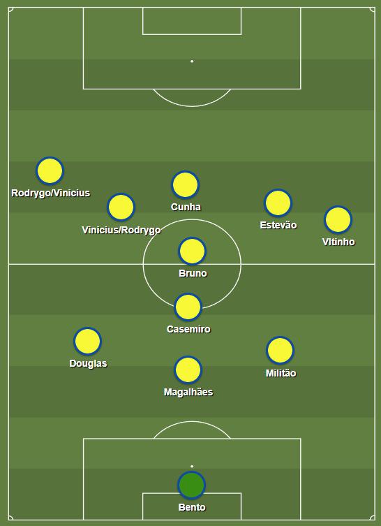Было хорошее движение Каземиро и Бруно, со своими недостатками, но первая фаза атаки была довольно качественной в исполнении канареечных.