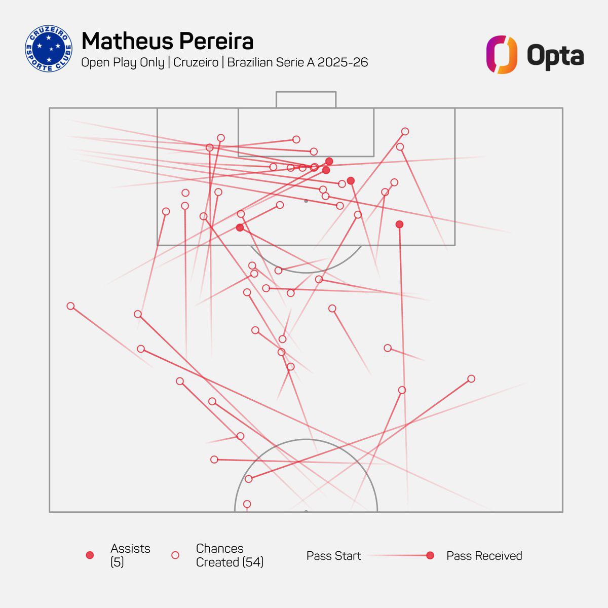Полузащитник «Крузейро» — единственный игрок, создавший более 50 моментов (без учета стандартных положений) в этом турнире. И второй ассистент турнира после Арраски.