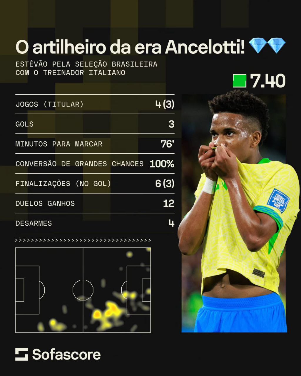Эстевао в качестве лучшего бомбардира сборной в мини-цикле Анчелотти должен и дальше набирать очки перед Рафиньей.