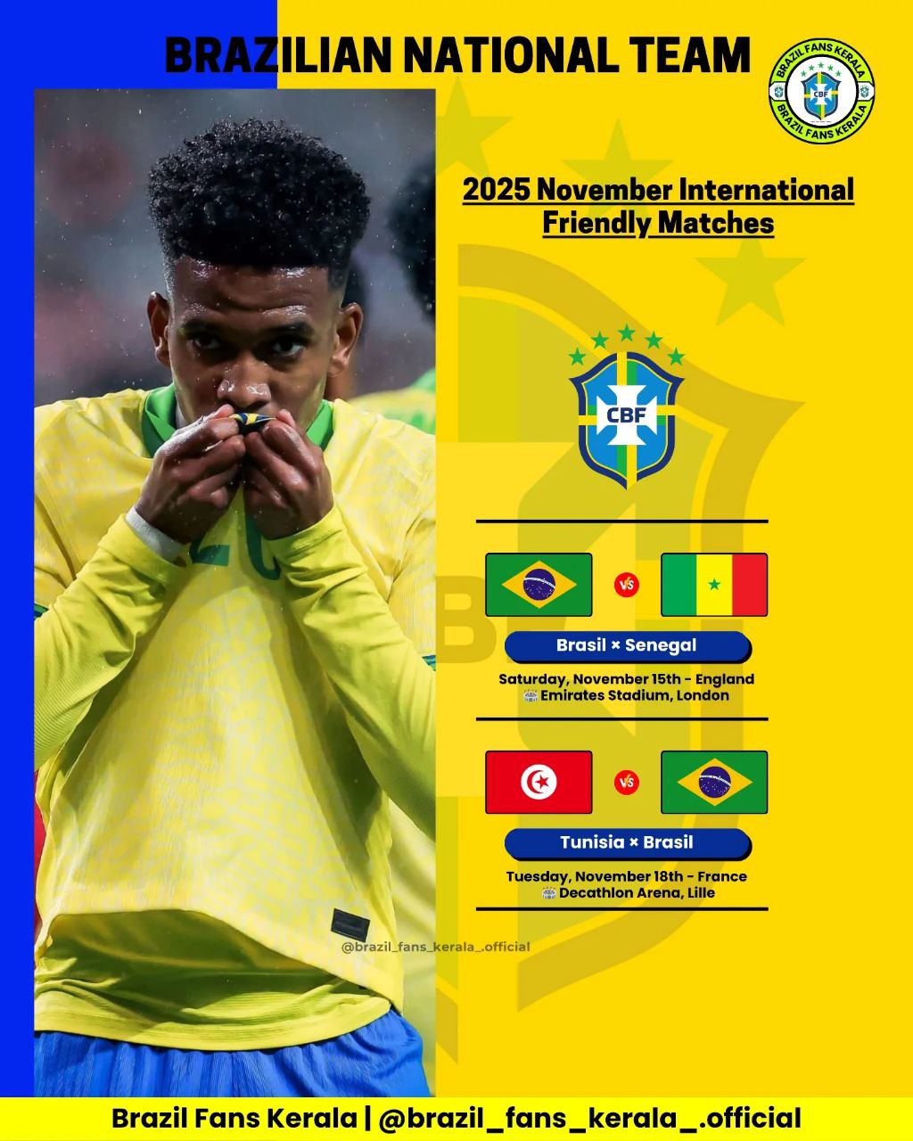 Соперниками Селесао в субботу будет Сенегал в Лондоне на «Эмирейтс» и во вторник Тунис в Лилле.