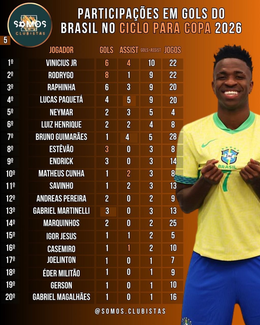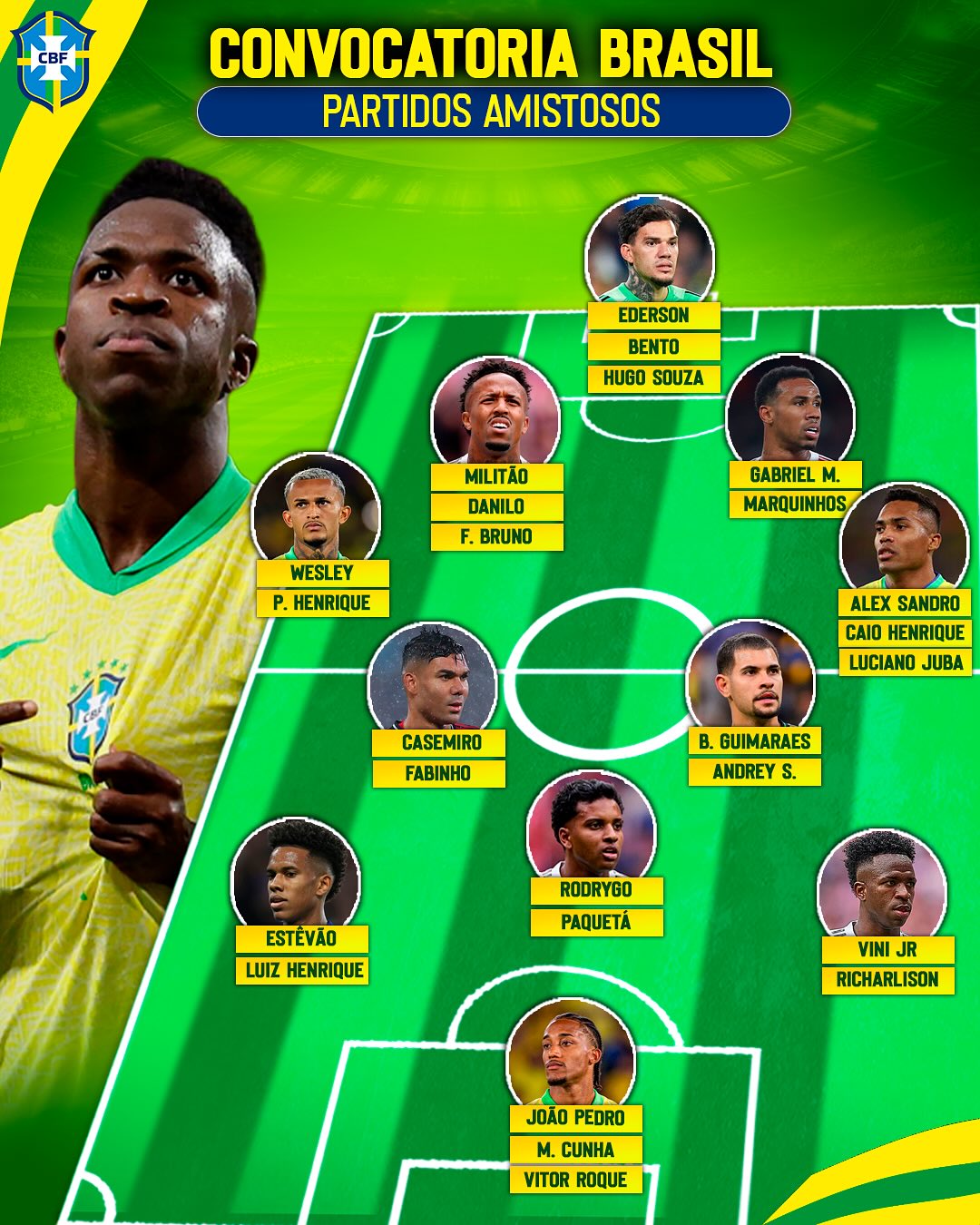 Довольно трезво оценивает этих парней Каземиро: «Будущее Бразилии? Маркиньос, Алиссон, Эдерсон и Бруно Гимараэс могут стать будущими лидерами сборной Бразилии. Винисиуса это не волнует, это не в его характере. И Родриго тоже».