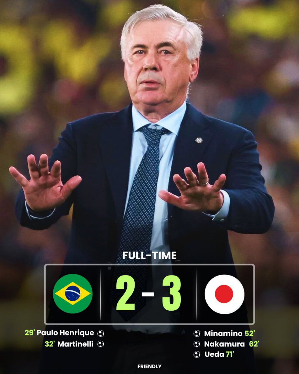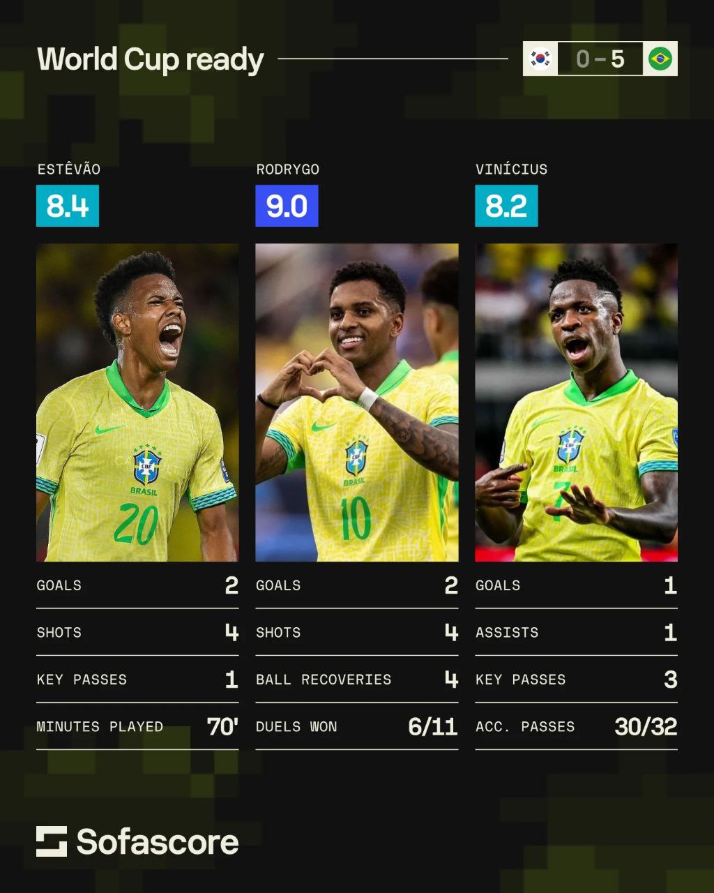 Победа со счётом 5:0 была столь же убедительной, как и доминирование бразильцев на поле. Команда Анчелотти восстановила самообладание и продемонстрировала более прямой и убийственный стиль. Даже присутствие Сон Хен Мина не смогло предотвратить бразильский шторм в Сеуле».