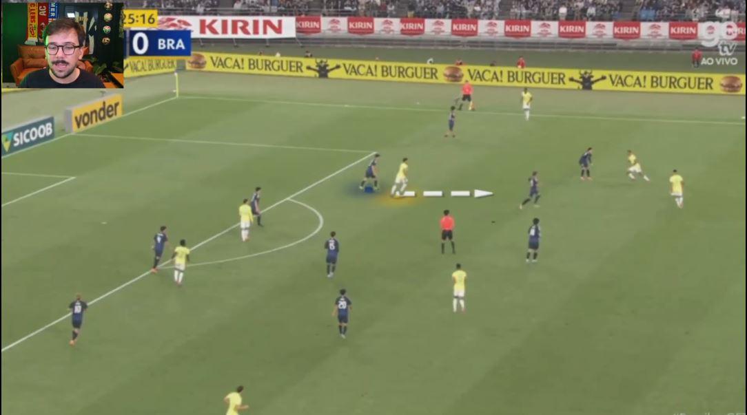 В первой же нешаблонной комбинации японская организация полностью развалилась. Отмечу качество движения форвардов. И Винисиуса, и Мартинелли, и Эстевао.