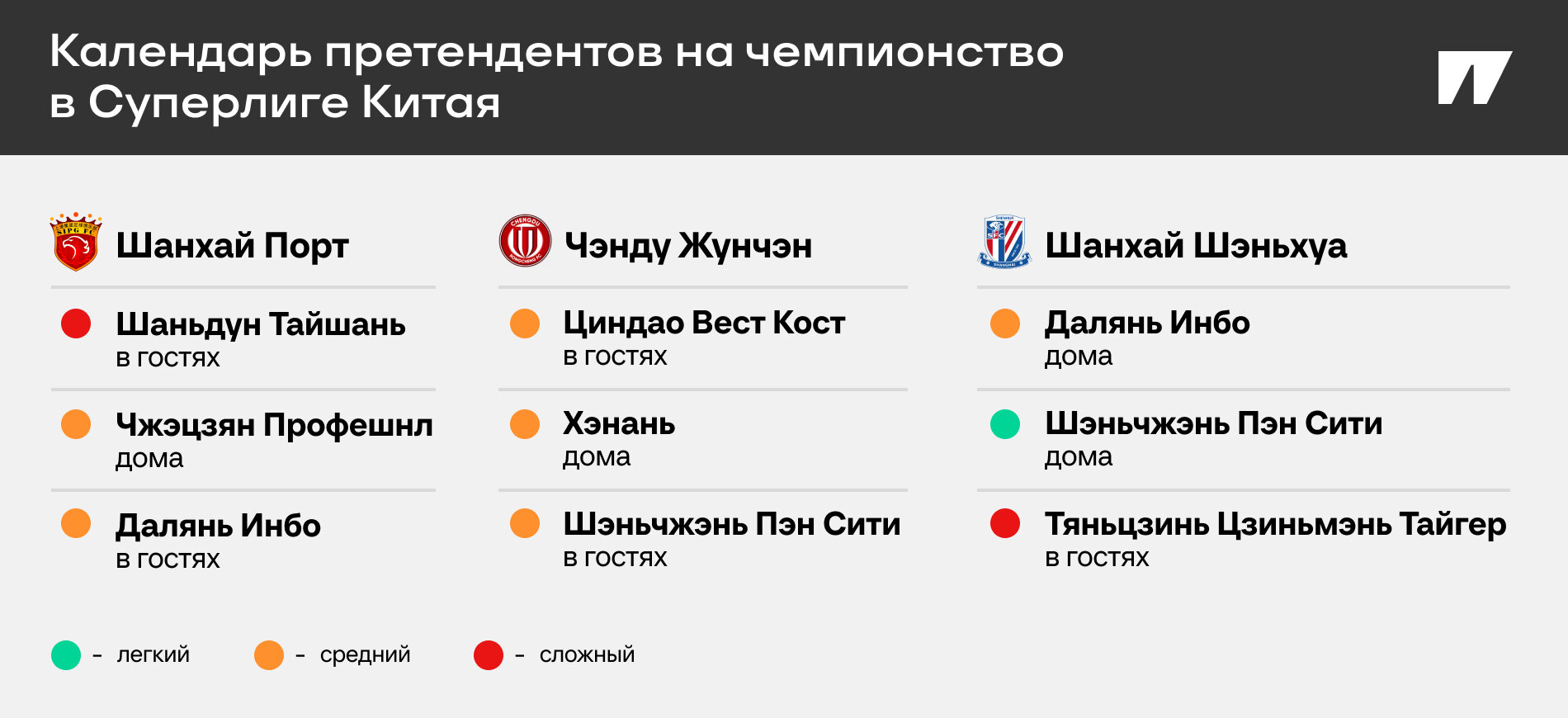 ● У «Шанхая» рулят ветераны: забили 36-летний У Си и 38-летний Юй Ханьчао. Они среди самых результативных игроков команды: семь и шесть голов в сезоне соответственно, больше забил только травмированный Сауло Минейро (восемь).