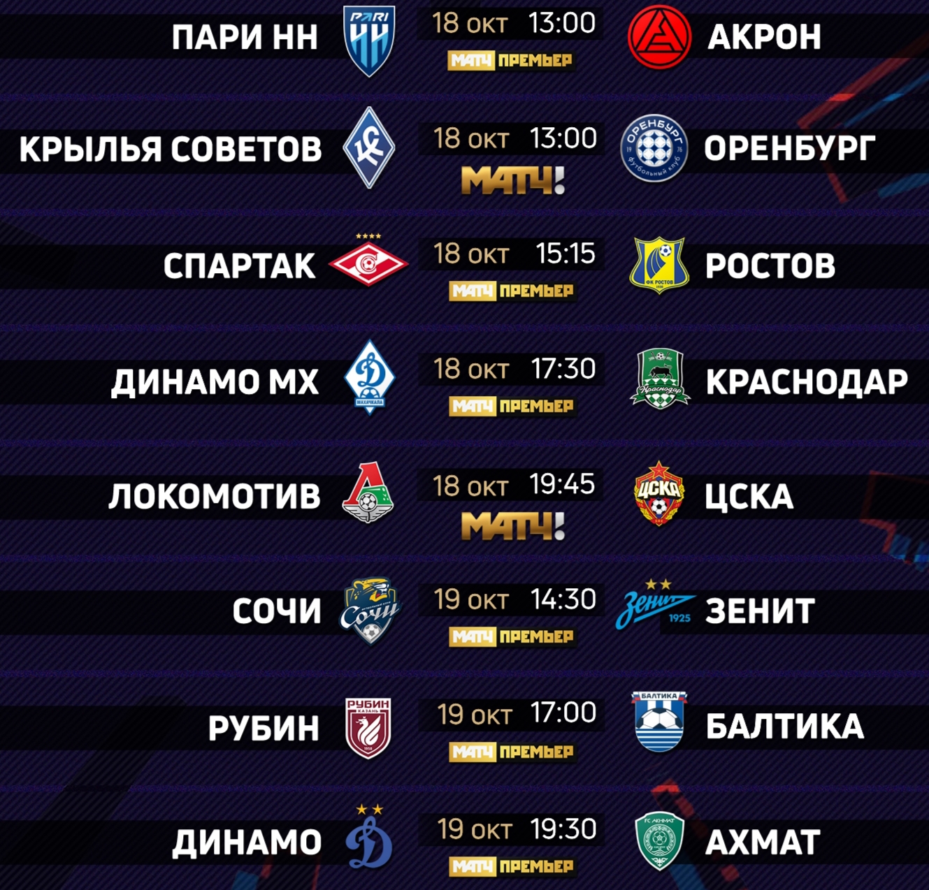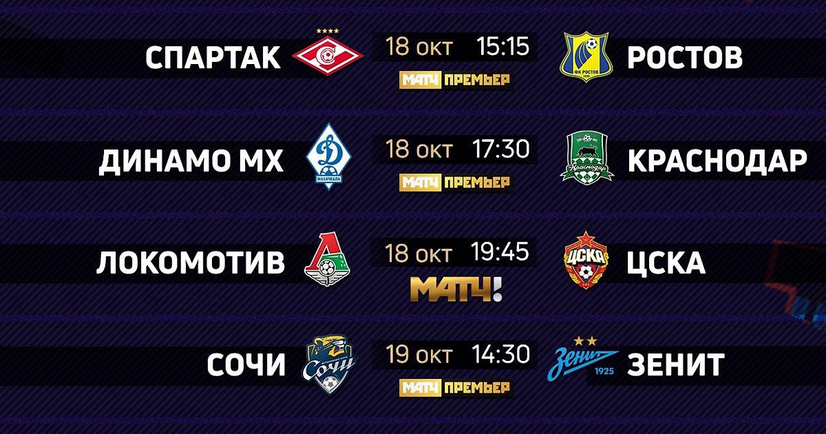 Расписание матчей 12-го тура РПЛ