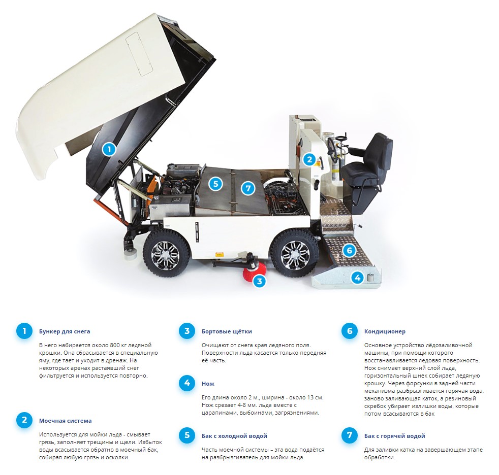 Толщина, температура льда и вода в комбайне у каждого вида спорта свои. Как и число комбайнов, которые выезжают во время соревнований. Например, все матчи КХЛ обслуживаются двумя комбайнами, у которых есть 15 минут на восстановление льда.