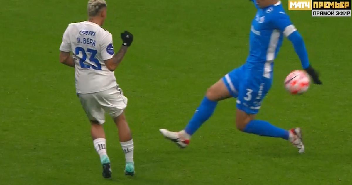 Но, хорошо! Давайте предположим, что рука игрока Зенита , не так заметно как у защитника Махачкалы, но всё - таки отставлена и действительно увеличивает площадь тела. Почему в расчёт не берутся другие критерии , такие как минимальное расстояние и удар в газон? Рассуждая логически, можно сделать вывод, что увеличение площади тела за счёт руки - и есть ключевой фактор.