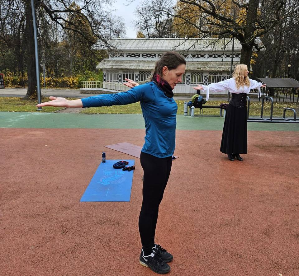 Девушка пришла на уличные тренировки в Измайловский парк весной 2022 года.
