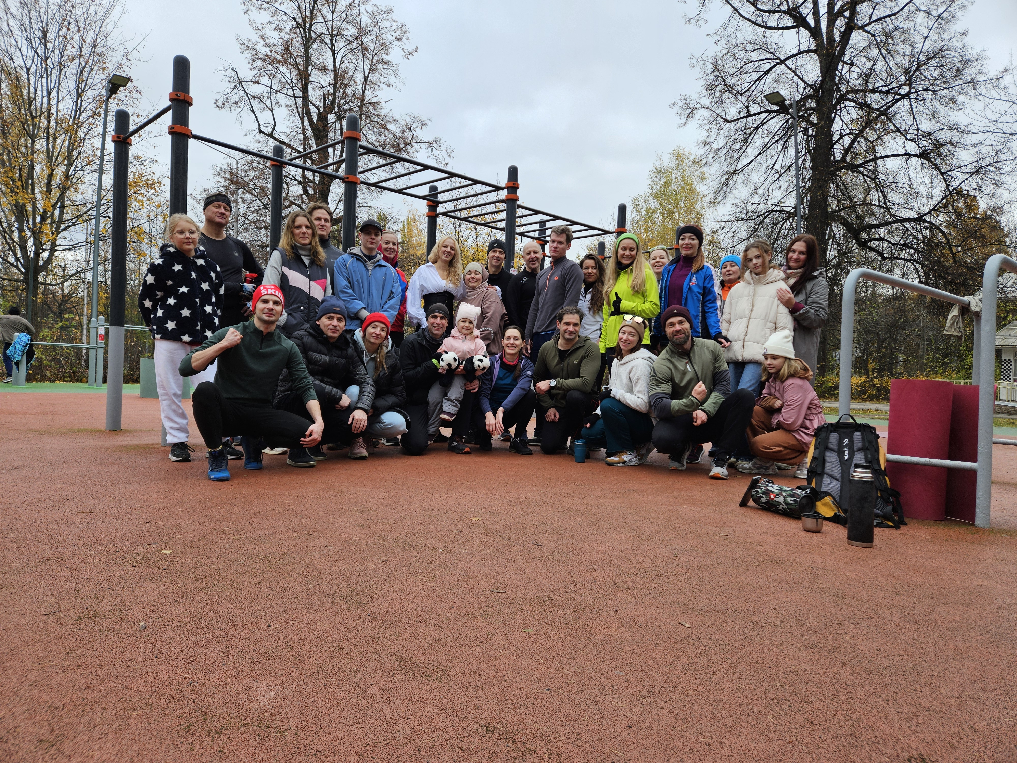 На тренировке в Измайловском парке я занимаюсь вместе с группой в 15 человек.