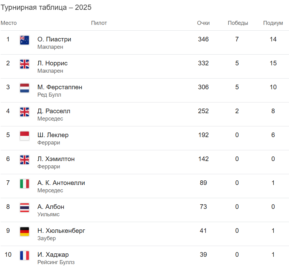 Это сократило его отставание от лидера чемпионата Оскара Пиастри до 63 очков при шести оставшихся гонках. Однако почти идеальный результат в Остине ещё больше уменьшил этот отрыв, подготовив почву для захватывающей борьбы за титул по мере приближения завершения сезона 2025 года.