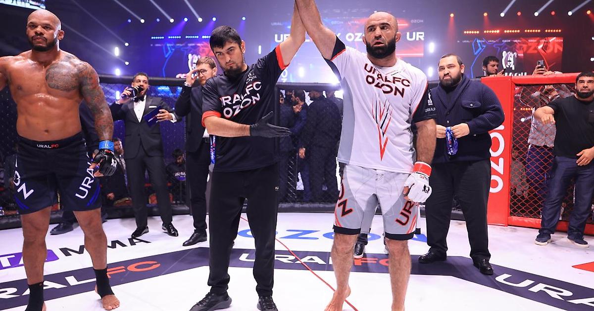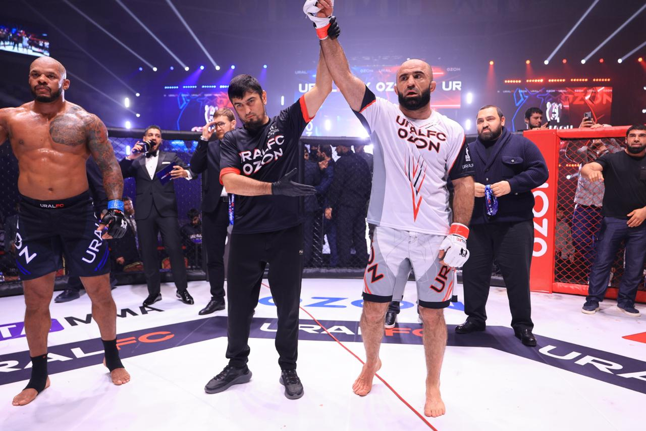 Россиянин Омари Ахмедов техническим нокаутом во втором раунде победил бразильца Родриго Кавалейро в главном поединке турнира «Ural FC X Ozon», который прошел в пятницу, 17 октября, в Каспийске.