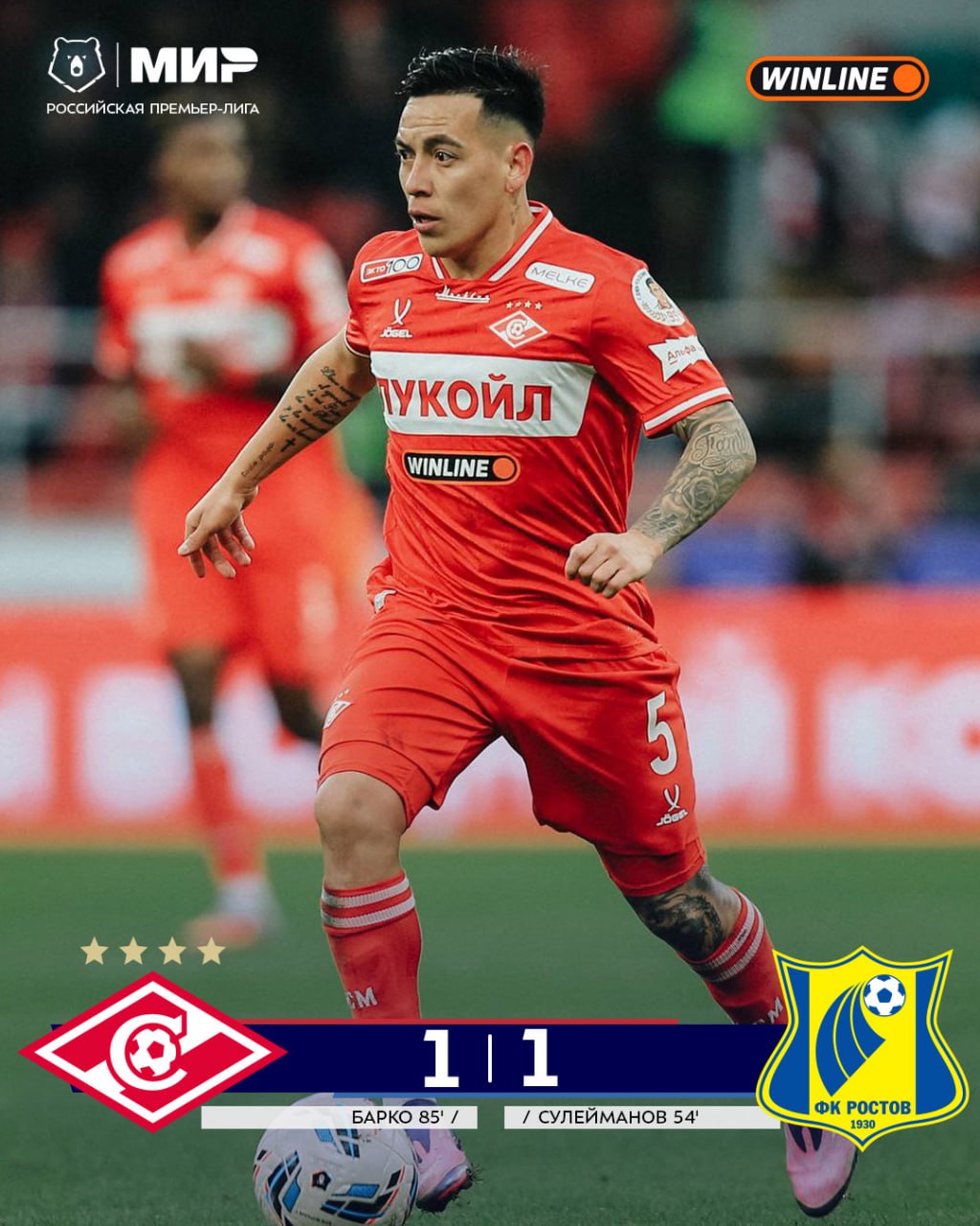 На 54-й минуте ростовчане вышли вперед благодаря голу Тимура Сулейманова. «Спартак» сумел отыграться в меньшинстве на 85-й — дальним ударом забил Эсекьель Барко.
