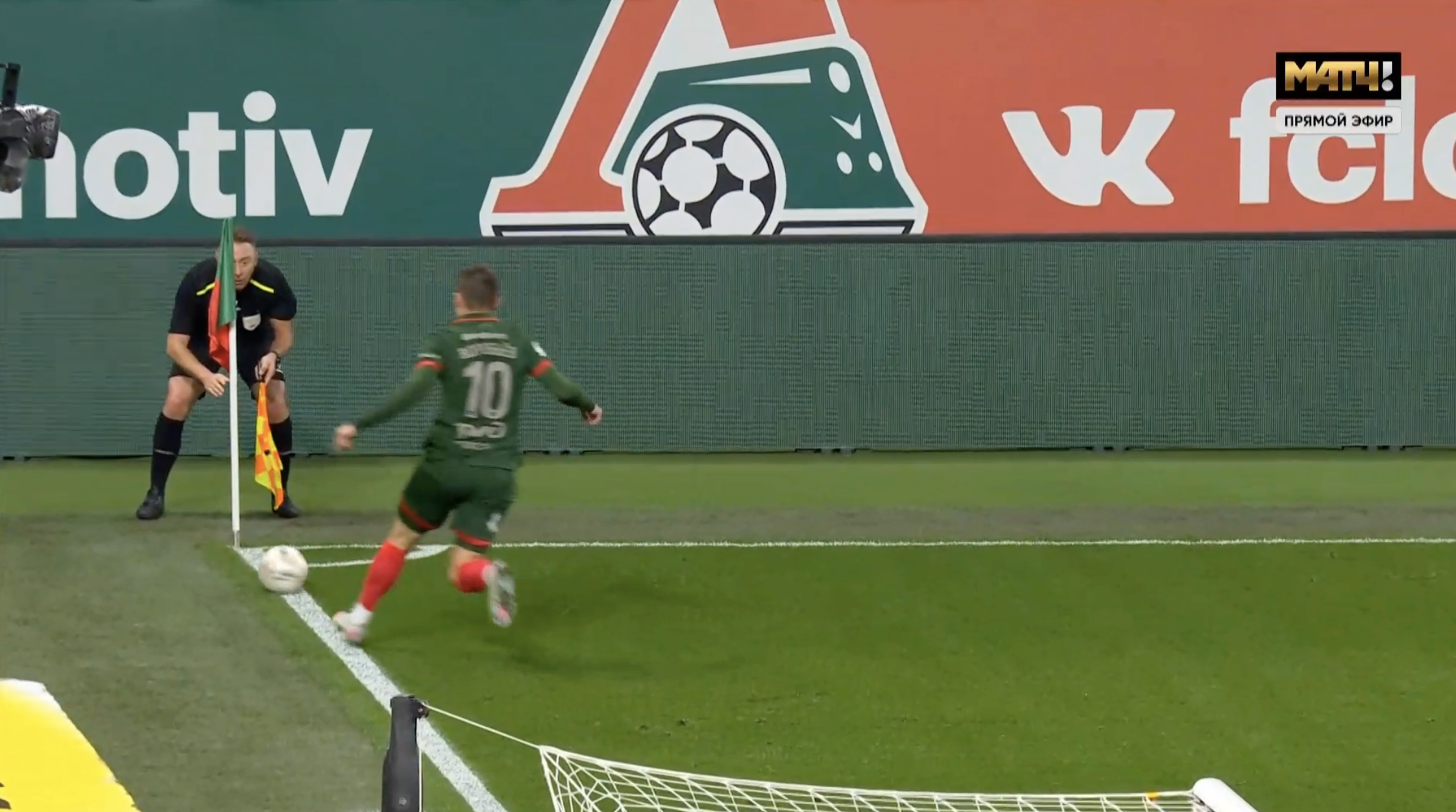 Ну серьезно: вы могли бы поверить, что через полторы секунды будет гол? Дмитрий Воробьев бьет от самой лицевой линии, от углового флажка.