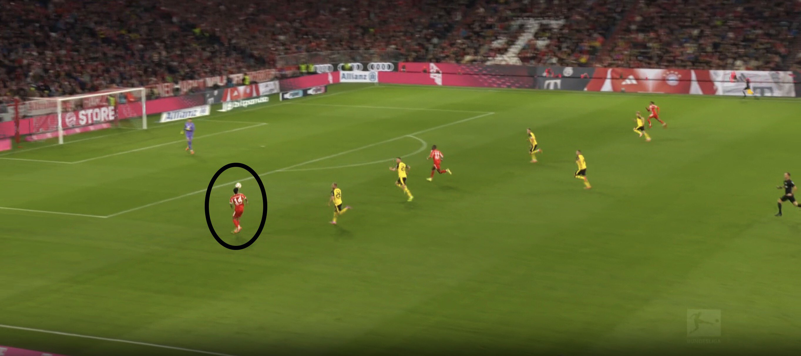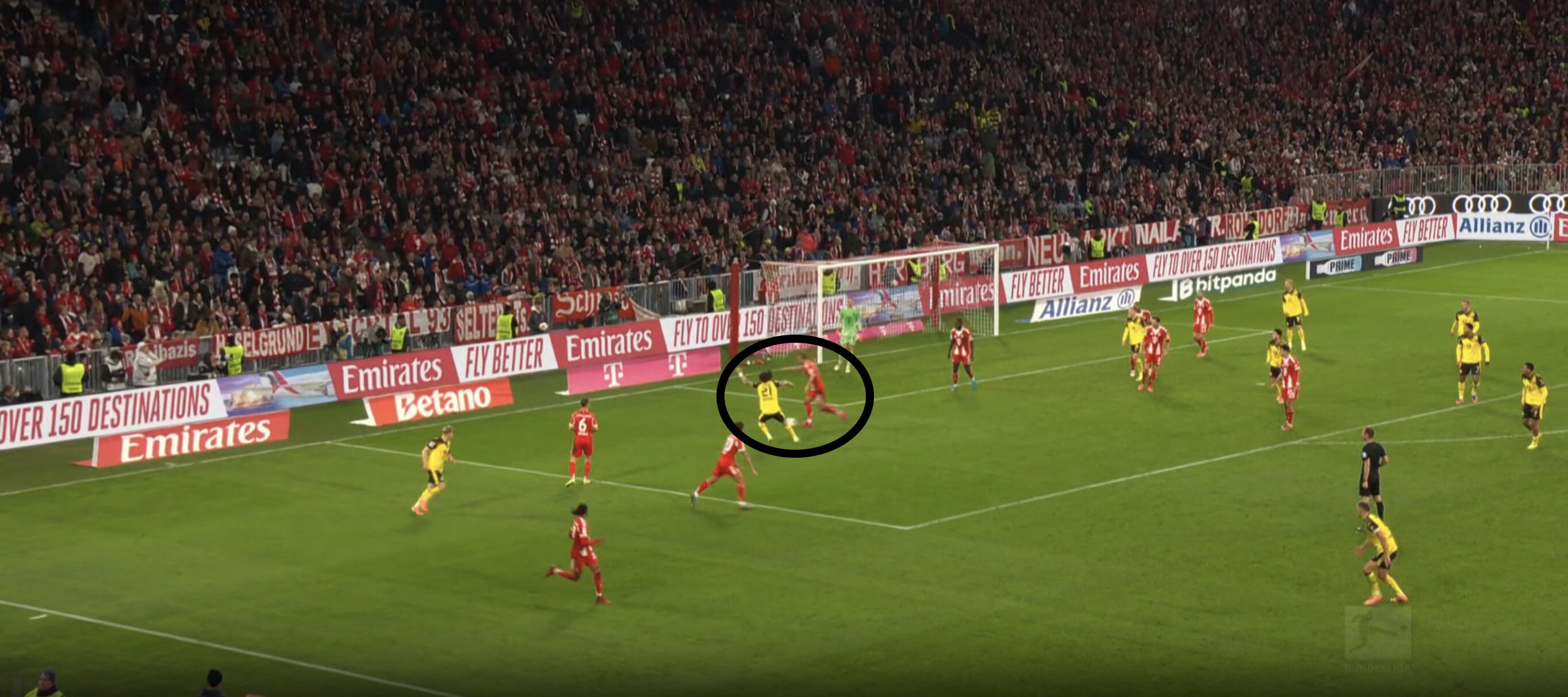 Такая расстановка, где в роли страхующего – не Антон, а Шлоттербек – сделала оборону «Дортмунда» заметно агрессивнее. Не сосчитать, сколько раз Шлоттербек (и партнеры рядом) перекусывали длинные передачи «Баварии» в стиле Упамекано до перерыва.