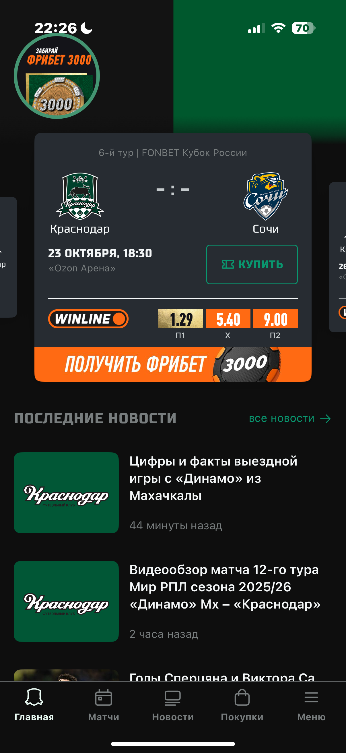 Приложение команды-чемпиона сразу напоминает, что нужно повысить интерес к просмотру матча , поставить деньги на «Краснодар», а если коэффициент маленький, то сделать специальную ставку. Шансов заработать у букмекеров будет больше . Очень заманчивая схема , на которую легко повестись.
