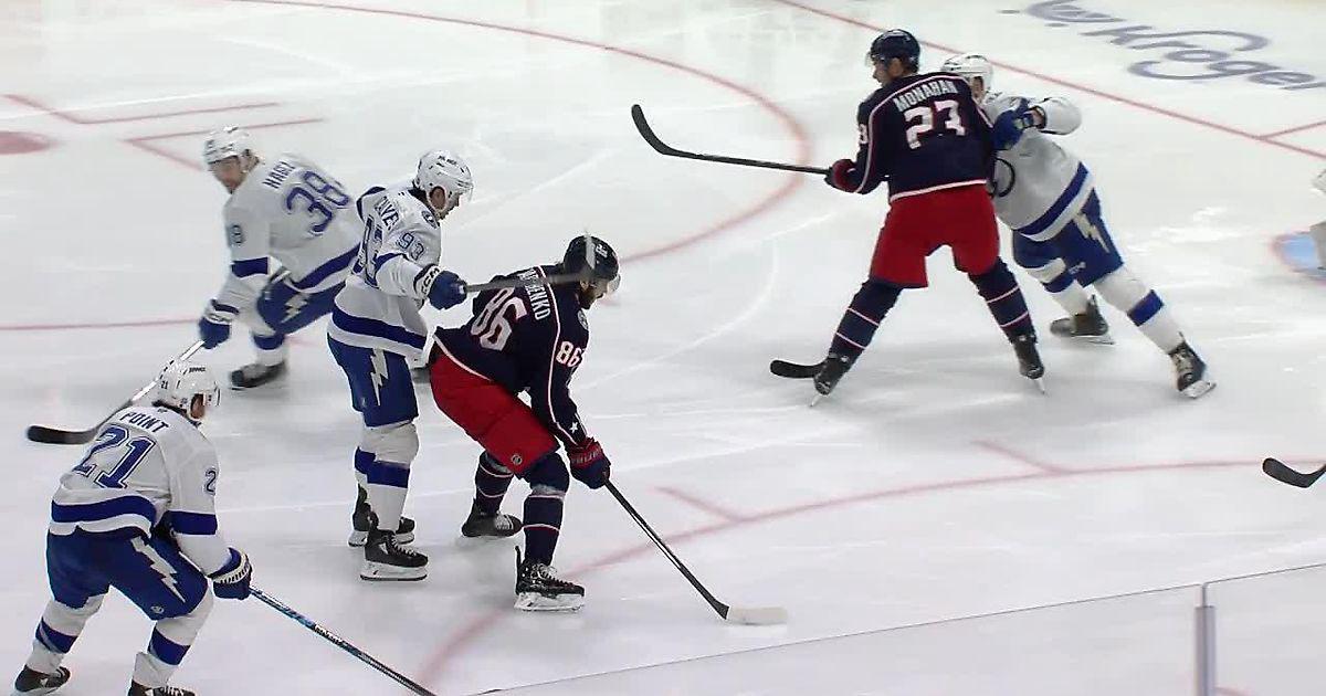 «Колумбус Блю Джакетс»-»Тампа-Бэй Лайтнинг» 3:2. Кирилл Марченко в начале 3 периода забросил победную шайбу. Кирилл Марченко забросил одну шайбу, Дмитрий Воронков отдал результативную передачу, Джет Гривз отразил 22 броска. В первом периоде Матье Оливье подрался с Кертисом Дугласом.
