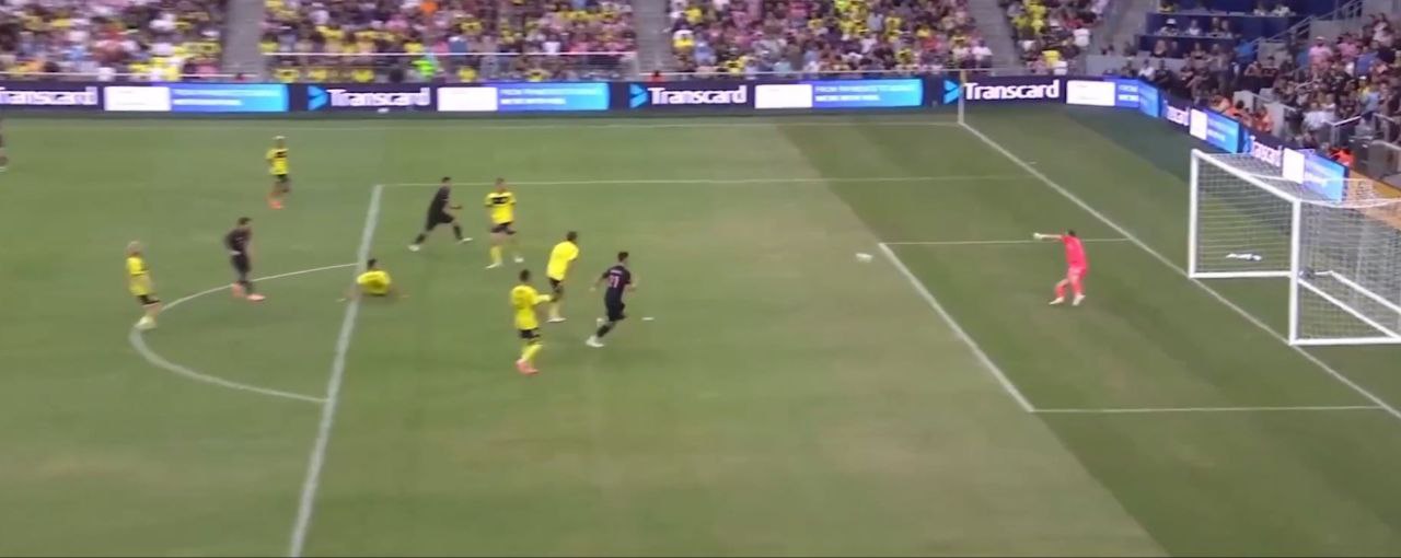 Через четыре минуты «Майами» вышел вперед, забил Бальтасар Родригес. А в конце матча Месси добил соперника, закрутил из центра штрафной любимой левой. Это хет-трик!