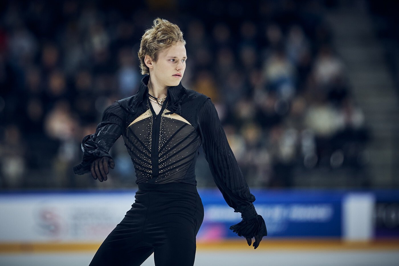 Уже перед короткой программой Малинин обратил на себя внимание: приехал на каток в Анже в образе тотал блэк. Водолазка, брюки с массивным ремнем, кожаная косуха и ботинки.