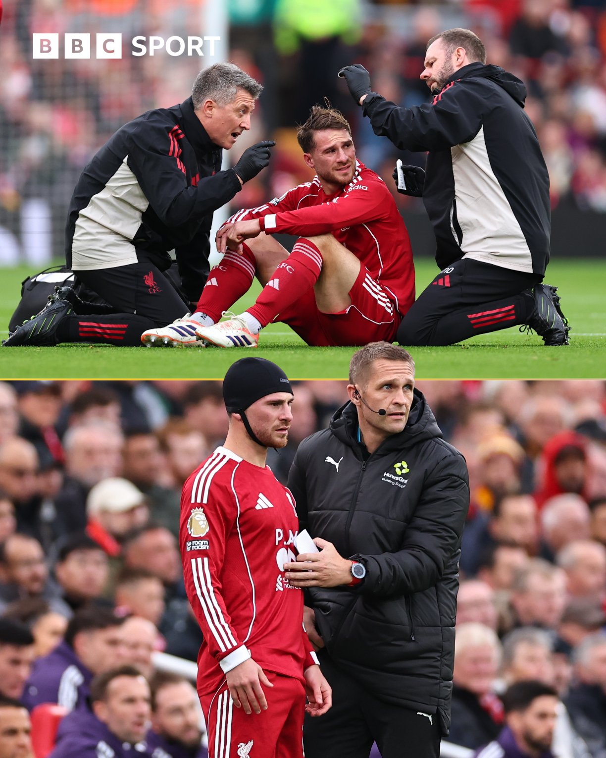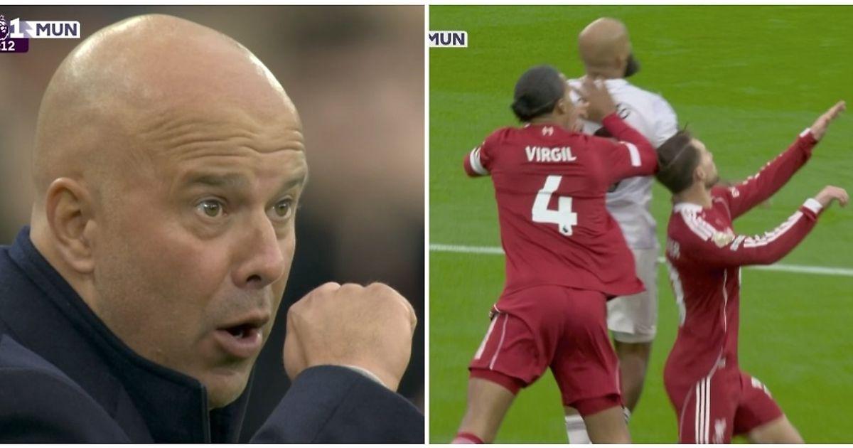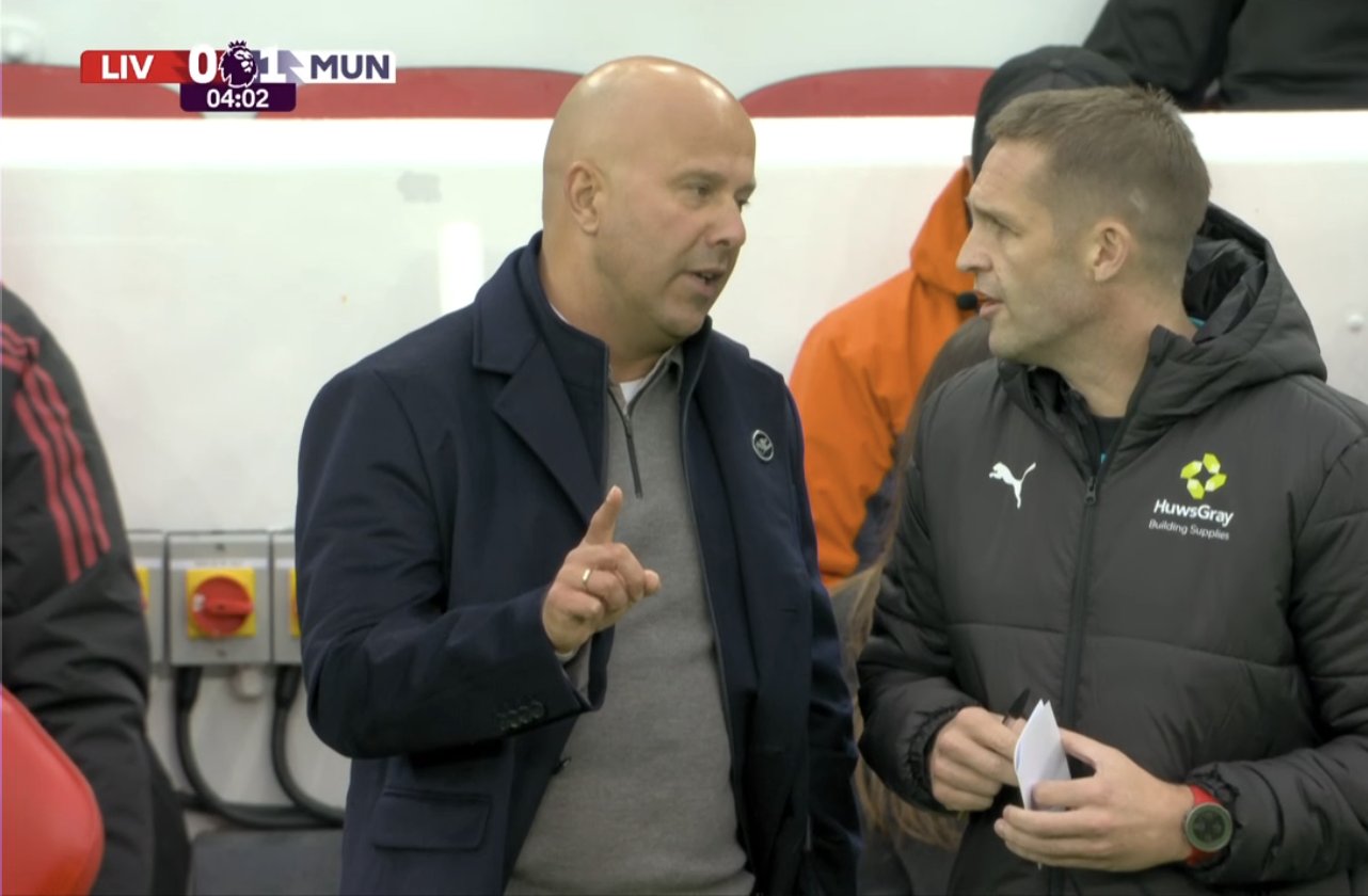 Арне Слот спорил с решением арбитра засчитать гол – показывал на голову, намекая, что Мак Аллистеру прилетело от Мбемо. А может, тренер протестовал из-за того, что Майкл Оливер не остановил игру, когда футболист получил травму головы.