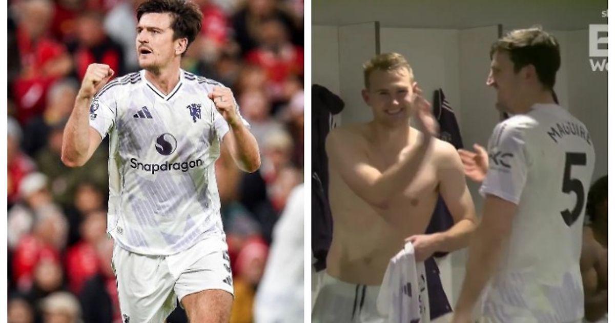 Раздевалка встретила Харри Магуайра как героя после его победного гола в ворота «Ливерпуля»🎥