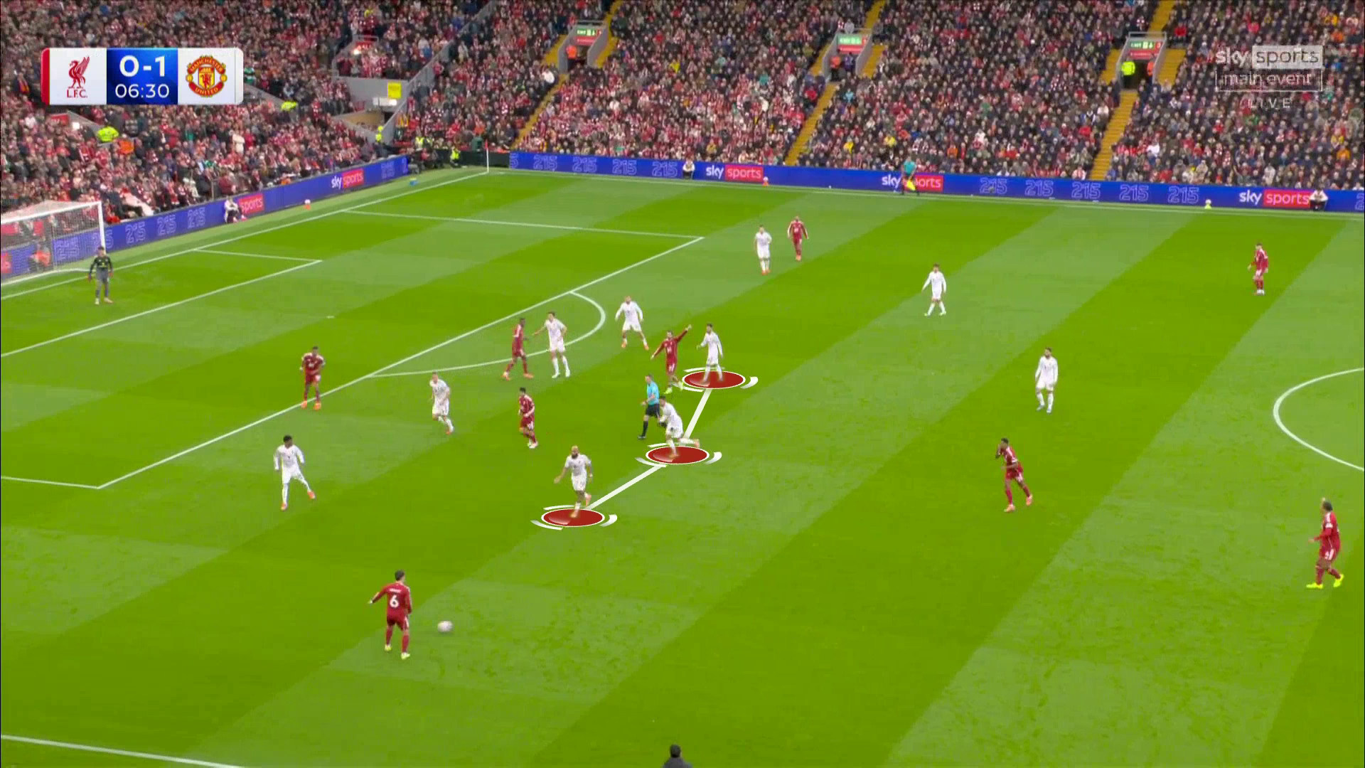За счет этой форы футболисты «Юнайтед» почти всегда лучше читали подбор. Прием давал «МЮ» сразу два ценных бонуса. Во-первых, «Ливерпулю» было труднее подчинить рисунок и вывести матч в любимый сценарий. Во-вторых, ситуации после подборов приводили к возможности атаковать «Ливерпуль», когда команда застревает в переходной стадии. Для «МЮ» такие атаки на пространстве весьма удобны.