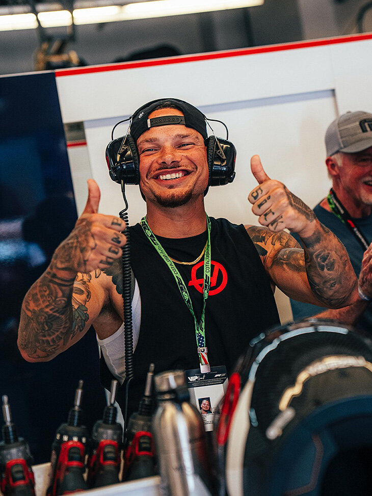 Да, колорит Техаса на этот раз раскрыли с полным погружением в кантри-культуру: исполнителей этого жанра можно было увидеть в каждых боксах. Прямо как рэперы в Майами. Вот «Хаас», например, принял Кейна Брауна – он как раз из тех звезд, кто собирает мультиплатиновые статусы и огромные площадки внутри США.