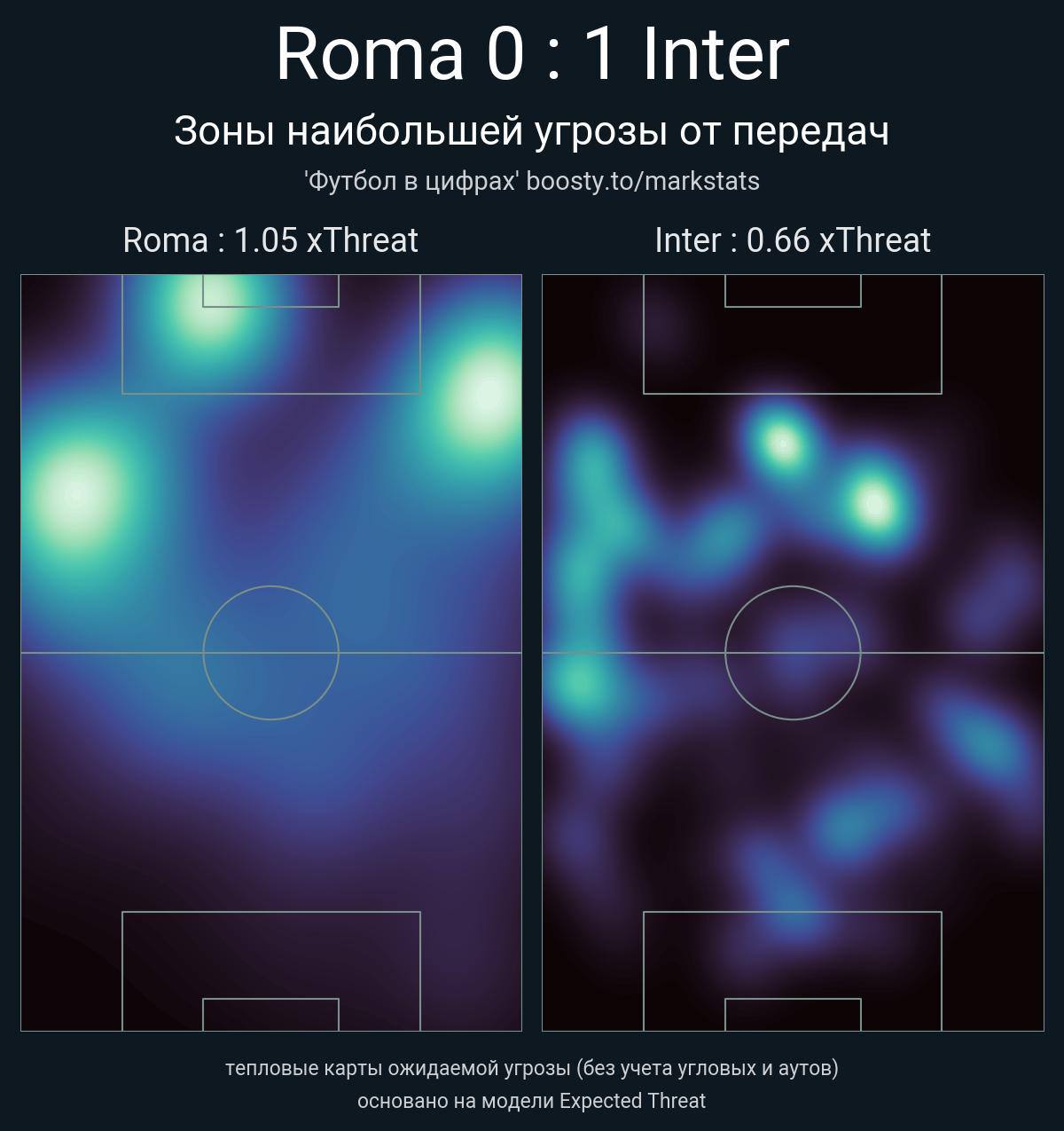 И именно поэтому концовка выглядела символично: «Рома» давит, «Интер» терпит. В статистике — баланс (xThreat 1.79 — 0.93, владение 57% на 43%), но на табло — 0:1. «Интер» Киву — тот же каркас, что был у Индзаги. Он меньше играет по нотам, больше — по чувству и отрезками. А «Рома» Гасперини все также идет по краю и все еще пытается заставить хаос подчиниться.