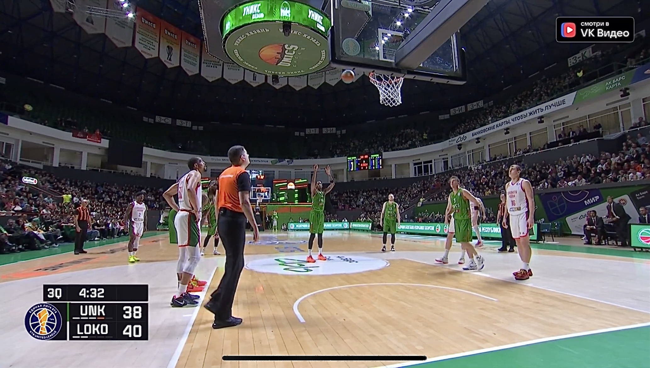 Общий счёт четверти достиг отметки 11:0 в пользу гостей. На табло — 38:40. И вот он — фол в защите под кольцом «железнодорожников». Судьи назначают штрафной, и к линии подходит самый результативный игрок УНИКСа — Маркус Бингэм, который до этого со штрафных в сезоне еще не мазал. Маркус исполняет первый бросок и…