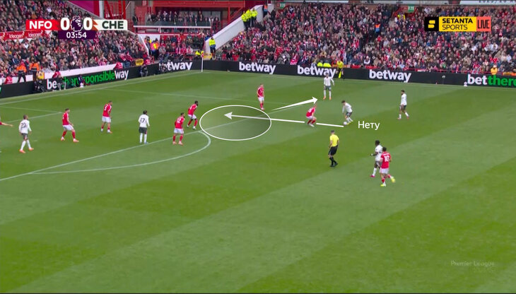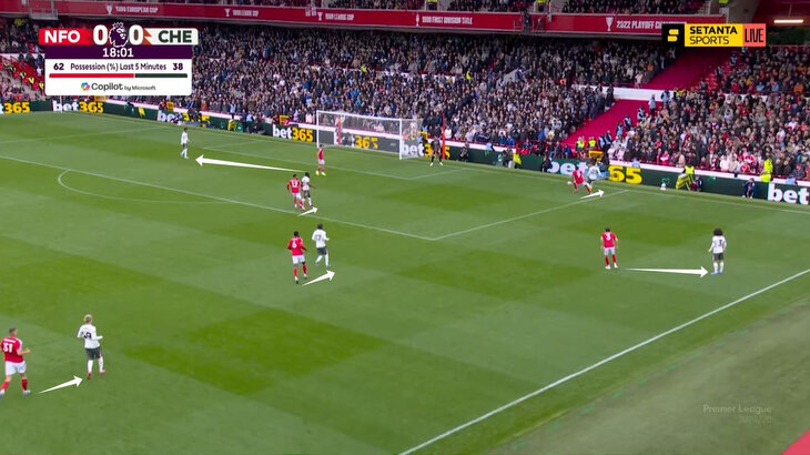 Да и преодолевать прессинг у «Челси» получалось с трудом. В первом тайме нанесли всего три удара из штрафной, а все три гола после перерыва забили после стандартов. Что же все-таки не работало у «Ноттингема»? Глобальная проблема (кроме стандартов) лишь одна – Александр Зинченко слева не справлялся с Педру Нету, несмотря на помощь Эллиота Андерсона. Вингер гостей оказался лучшим в команде по xA (0,7), передачам под удар (4) и точным пасам в штрафную (6).