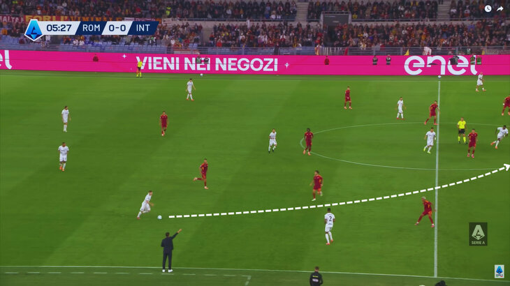 Если б «Рома» прессинговала привычно активно, Барелла никогда не получил бы столько времени в этой – принципиально выгодной для «Интера» – позиции.