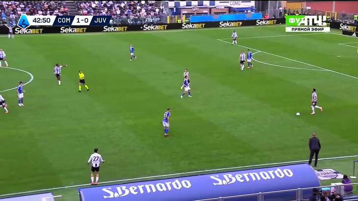 Но высокое расположение Консейсау в первой фазе фактически оторвало правый край от зоны, в которой строились атаки. Крайние ЦЗ реже срывались, потому что не могли рассчитывать на привычную поддержку по ширине. В итоге Локателли некуда было сесть. Структура получилась намного более жесткой и читаемой – игроки больше, чем обычно, держались позиций. Переход через центр сломался: «Юве» рассекал линии в основном индивидуальными действиями.