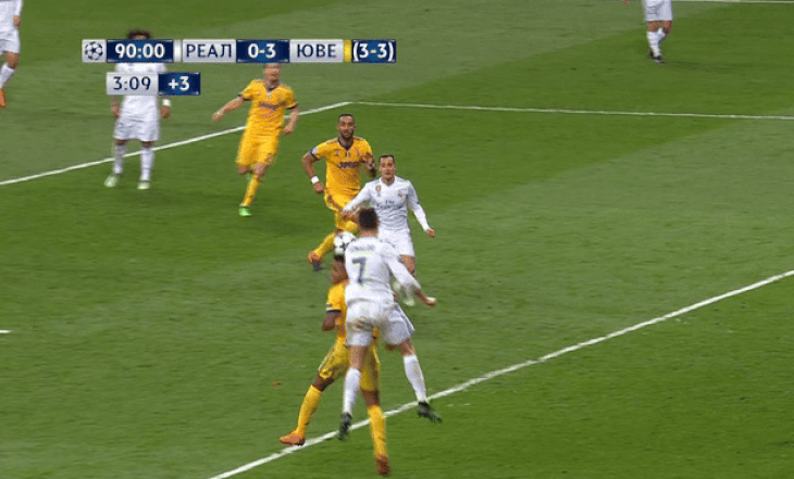 Роналду скинул мяч Лукасу Васкесу на линию вратарской, он готовился бить мимо Буффона с очень близкого расстояния.