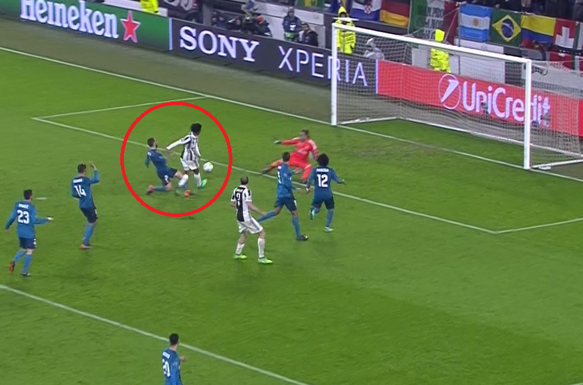 Медхи Бенатия, не успевая, прыгнул за мячом со спины, и попал Васкесу ногой в грудь – испанец упал.