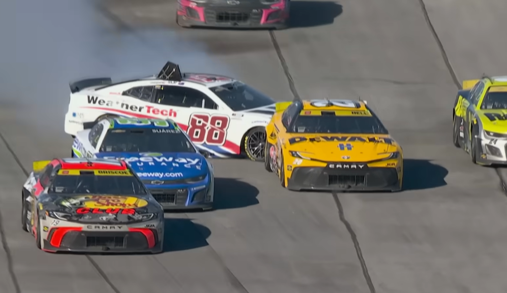 Первый ряд на рестарте заняли Кайл Ларсон и Уильям Байрон. Казалось бы, хороший момент для HMS взять реванш за прошлый этап. Но нет. Сначала Ларсона выбивают из потока: