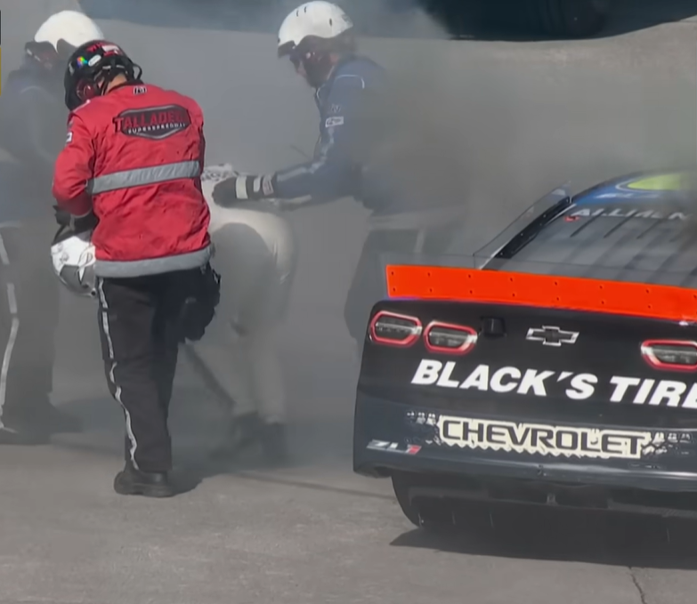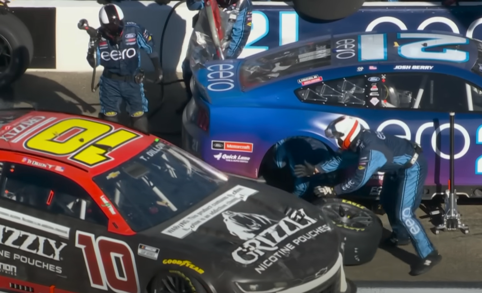 На этих же питах Тай Диллон задевает лежачее колесо пит-бригады Джоша Берри, что не особо понравилось его механику: