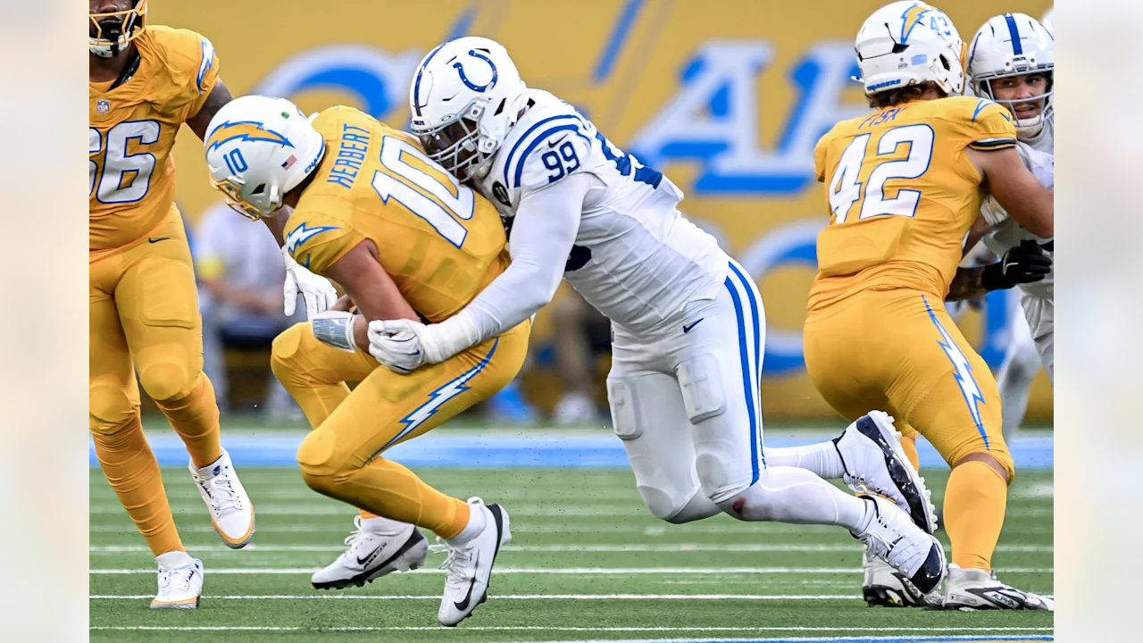 Пока у «Чарджерс» не все клеилось, «Колтс» сверкали по обе стороны мяча. Линейный защиты Гровер Стюарт подбил пас Джастина Херберта, после чего мяч взмыл в воздух, а приземлившись, оказался в пухлых ладошках защитника.