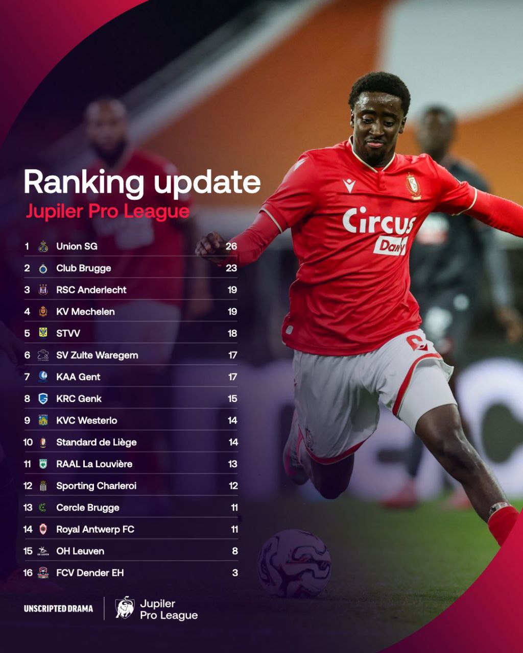 С другой стороны, новичок смотрится круто: набрал 13 очков в пяти последних турах. Благодаря такой продуктивности он взлетел в зону чемпионского плей-офф и сравнялся по очкам как раз с «Гентом». У обоих по 17.
