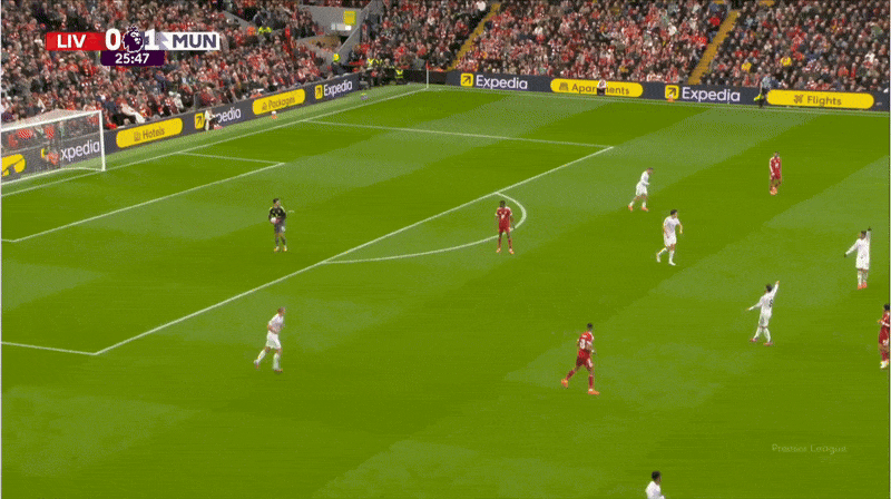 Воздушное превосходство Шешко в сочетании с безупречным контролем мяча и первым касанием Куньи позволили «Юнайтед» неоднократно выигрывать вторые мячи в последние 30 минут встречи — особенно после того, как «Ливерпуль» перешёл на схему с двумя центральными полузащитниками, где действовали Флориан Вирц и Кёртис Джонс.