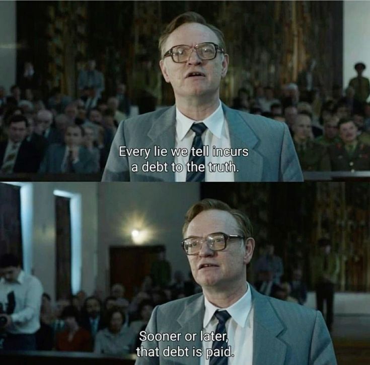 Цитата на века: «Какова цена лжи? Дело не в том, что мы принимаем ее за правду. Реальная опасность заключается в том, что если мы услышим достаточно лжи, то вообще перестанем распознавать правду», – член комиссии по расследованию причин аварии Чернобыльской АЭС Валерий Легасов
