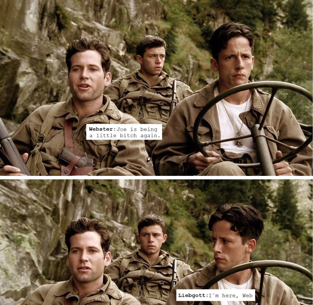 Сюжетная арка: Экранизация художественно-документальной книги, прослеживающая путь боевого батальона от учебки до конца Второй мировой войны, имеет под собой реальные прототипы.