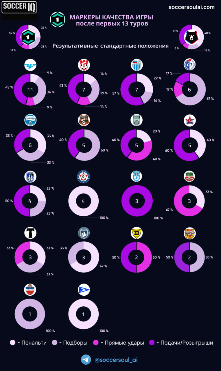 Не так давно в своём Телеграм-канале мы сравнивали обе лиги, после 11 матчей. Предметом сравнения как раз и были маркеры качества игры, а также результативные стандартные положения.